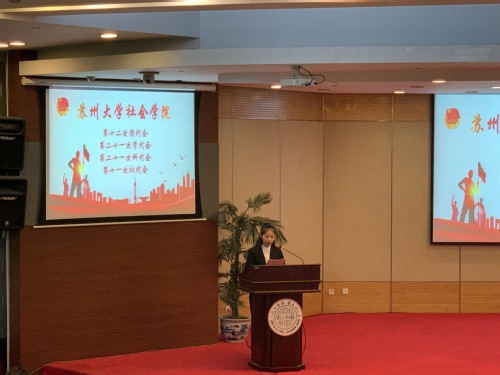 2019年12月4日下午1点,苏州大学社会学院第十二次团代会、第二十一次学代会、第二十一次科代会、第十一次社代会在苏州大学独墅湖校区炳麟图书馆一楼学术报告厅隆重召开。出席本次大会的领导和来宾有:苏州大学团委副书记袁建宇老师,苏州大学社会学院党委副书记、副院长郝珺老师,苏州大学团委副书记,2017、2018级辅导员袁羽琮老师,苏州大学学生会副主席陈晓冉同学,苏州大学科技协会理事长刘伯卿同学,苏州大学学生社团联合会副主席兰松泉同学以及各兄弟院系的学生会、科协、社团联合会的主要负责人。