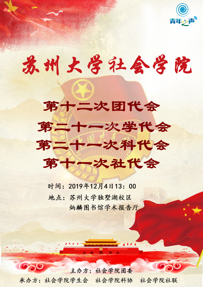 社会学院:苏州大学社会学院第十二次团代会、第二十一次学代会、第二十一次科代会、第十一次社代会