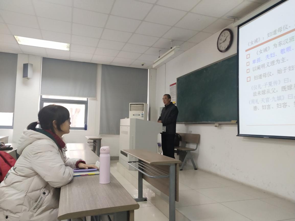 本次讲座分为三个部分:传统女学经典文献;传统女学内容特点和传统女学的现代转型。余老师先引入导言,讲述了何为女学,何为中华女学,介绍了《女诫》一书。《女诫》为东汉班昭教女之书,分为卑弱、夫妇、敬顺、妇行、专心、曲从和叔妹七个方面,以阐明义理为主,“妇道母仪,始于妇德”,《女诫》堪称中华三从四德之源流。在《礼记·子夏传》和《周礼·天官·九嫔》中都有相关的记载。