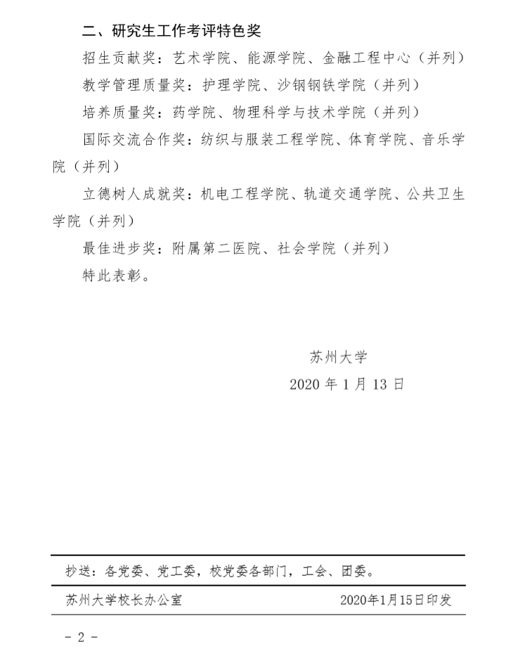 社会学院在苏州大学2019年研究生工作考评中荣获最佳进步奖