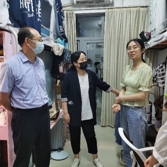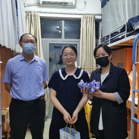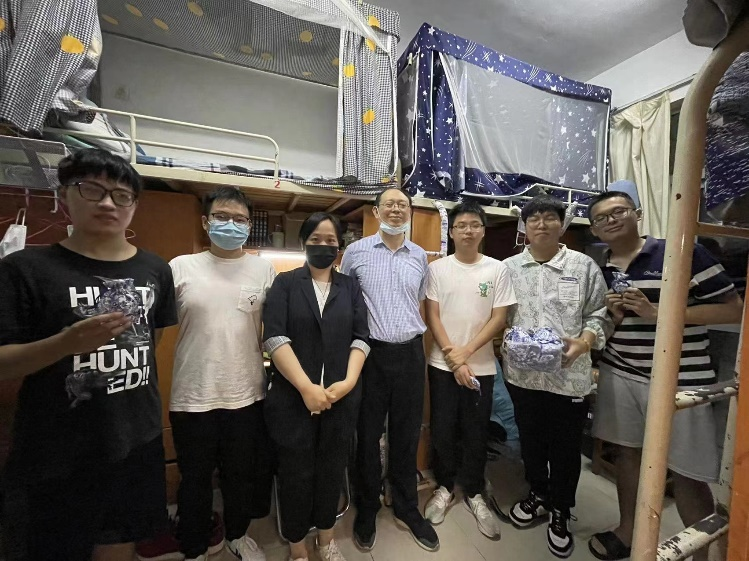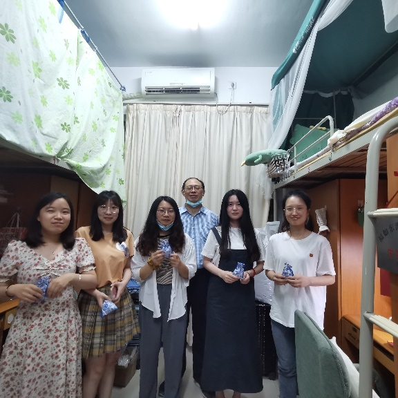 6月4日晚,社会学院党委书记邓国林、副院长、副书记朱今、研究生辅导员朱星洁、本科生辅导员孙帅,一同前往学生宿舍,为毕业生送上节日祝福和慰问品。