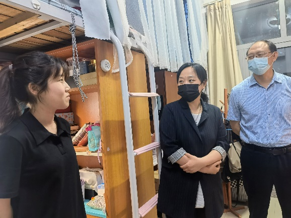 走访过程中,邓书记与同学们亲切交谈,询问同学们的就业进度、未来升学和工作的规划安排,及时解答了大家提出的疑问,鼓励他们调整心态,以积极主动的心态面对挑战。朱书记提醒同学们要提高安全防范意识,遵守学校的规章制度,保障个人身心安全,以充实饱满的精神风貌度过在校的最后时光,确保安全、文明、顺利离校。