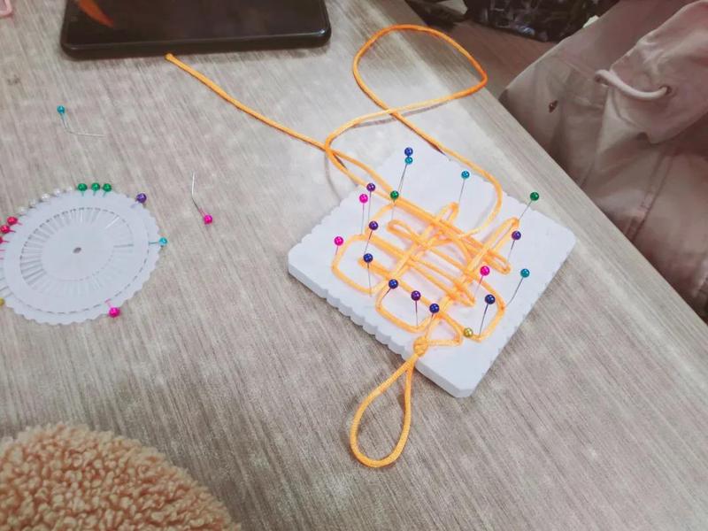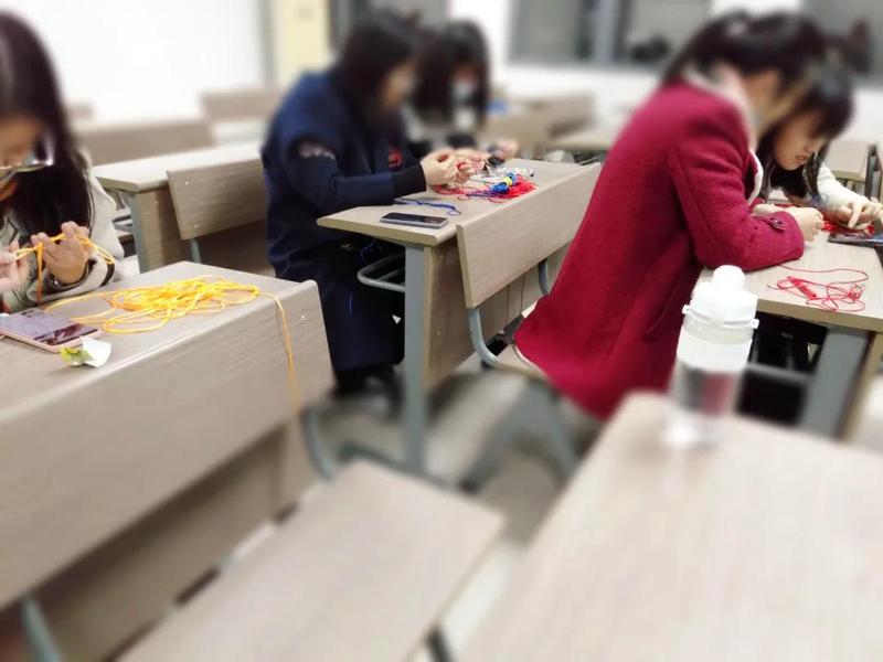 起初,由于视频操作太快,同学们难以看清,于是组织方进行了详细的讲解,并且播放了各种各样的视频,给了同学们多种多样的选择,同学们很快就投入了并挑选了自己喜欢的样式,开始了认真的学习和编制。