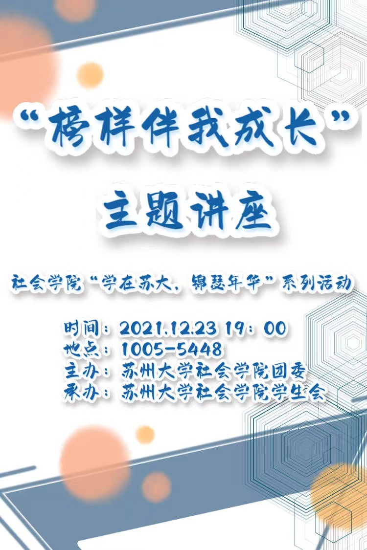 社会学院:“学在苏大,锦瑟年华”系列活动 ——“榜样伴我成长”主题讲座