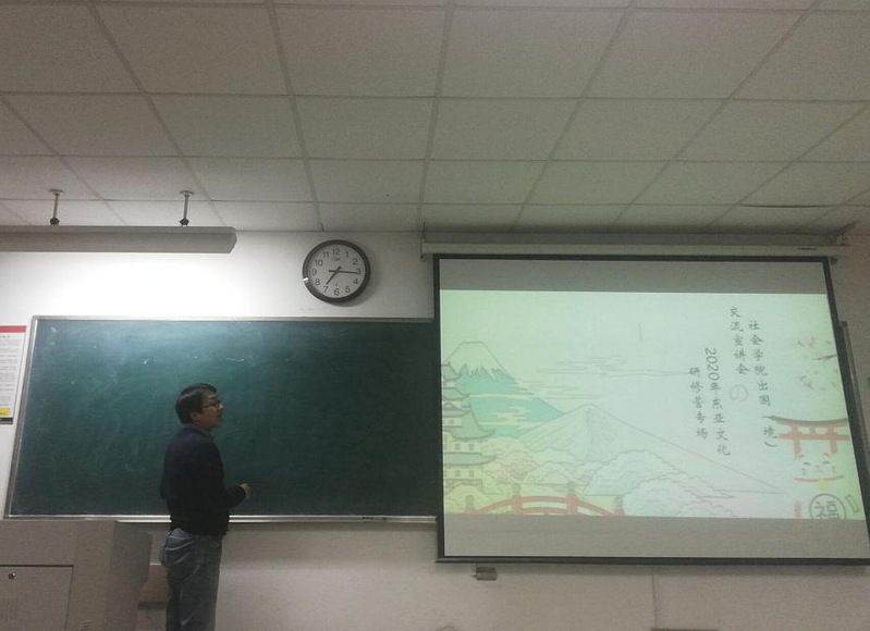 11月29日18时30分,社会学院2020年东亚文化研修营宣讲会在1002楼2101教室举行。社会学院历史学系张传宇副教授,社会学院学工办主任、16级辅导员马竞飞老师,以及16级历史学(师范)的马昊天同学出席了本次宣讲会,为历史学系的同学们作出了有关东亚文化研修营的详细介绍与答疑。