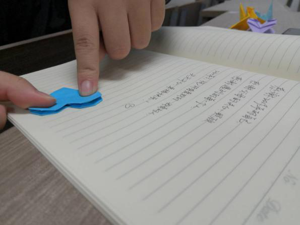 活动最后,工作人员为所有参与本次活动的同学发放了书签和明信片,既实用美观,又富有纪念意义。写满同学们话语、贴满同学们折纸的笔记本被工作人员回收,活动结束后将以笔记本为蓝本来制作纪念相册,与参与活动的同学们纪念分享。