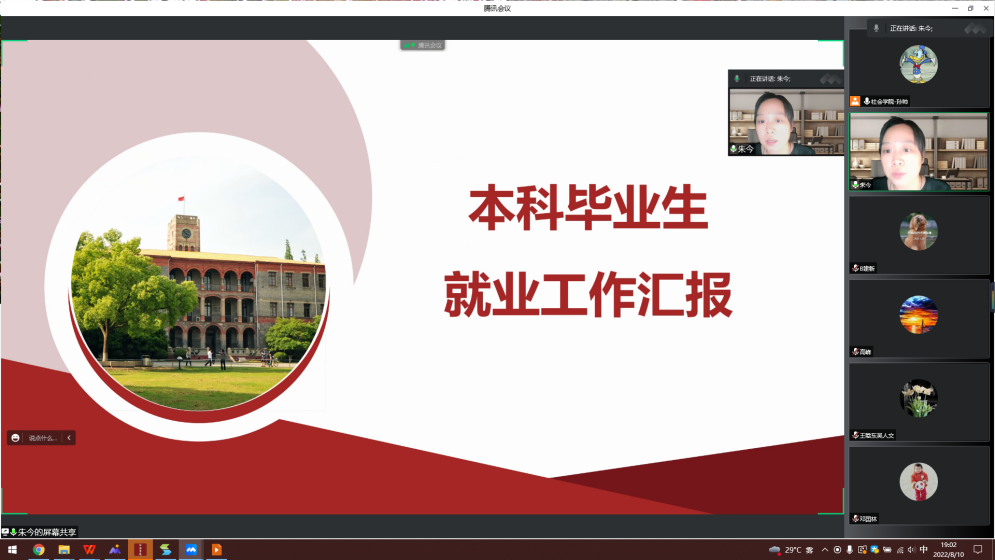8月10日晚,社会学院本科生八月份就业工作会议在“腾讯会议”线上平台顺利召开。社会学院院长高峰,党委书记邓国林,党委副书记、副院长朱今,2022届毕业生就业工作帮扶工作组全体老师参加本次会议。会议由18级本科生辅导员孙帅主持。