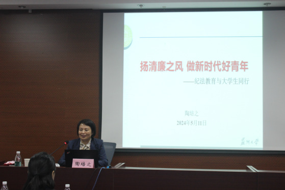 为深入学习贯彻习近平总书记关于加强党的纪律教育的重要论述,扎实开展党纪学习教育,提高新时代青年党性修养和纪律意识,进一步强化纪检干部队伍建设,5月11日晚,社会学院分党校“扬清廉之风,做新时代好青年”廉洁教育专题党课暨分党校春季学期培训班第二次党课在学院学术报告厅顺利举行。本次专题党课由校纪委副书记陶培之讲授。学院党委书记、分党校校长邓国林,党委副书记兼副院长、分党校副校长朱今,专职组织员、分党校秘书李玲出席讲座。学院各党支部纪检委员、2024年春季学期预备党员培训班、发展对象培训班、入党积极分子培训班全体学员参加讲座。讲座由邓国林书记主持。