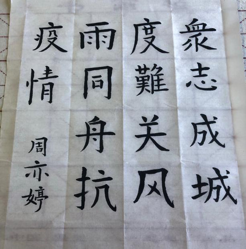 最后同学们以疫情为主题,以各种艺术作品为形式完成了以“纸”传情活动。薄薄的纸张上承载着同学们在疫情之下对生活的热情与希望。“众志成城渡难关,风雨同舟抗疫情”,这句话是同学们对击败疫情的决心,也是中国儿女对未来美好生活的期许。“山川异域,风月同天”,人们虽然不在同一个地方,虽然肤色与种族不尽相同,可是人们的心却是团结在一起共同抵御疫情,共同推动着人类命运共同体朝更高更远发展。