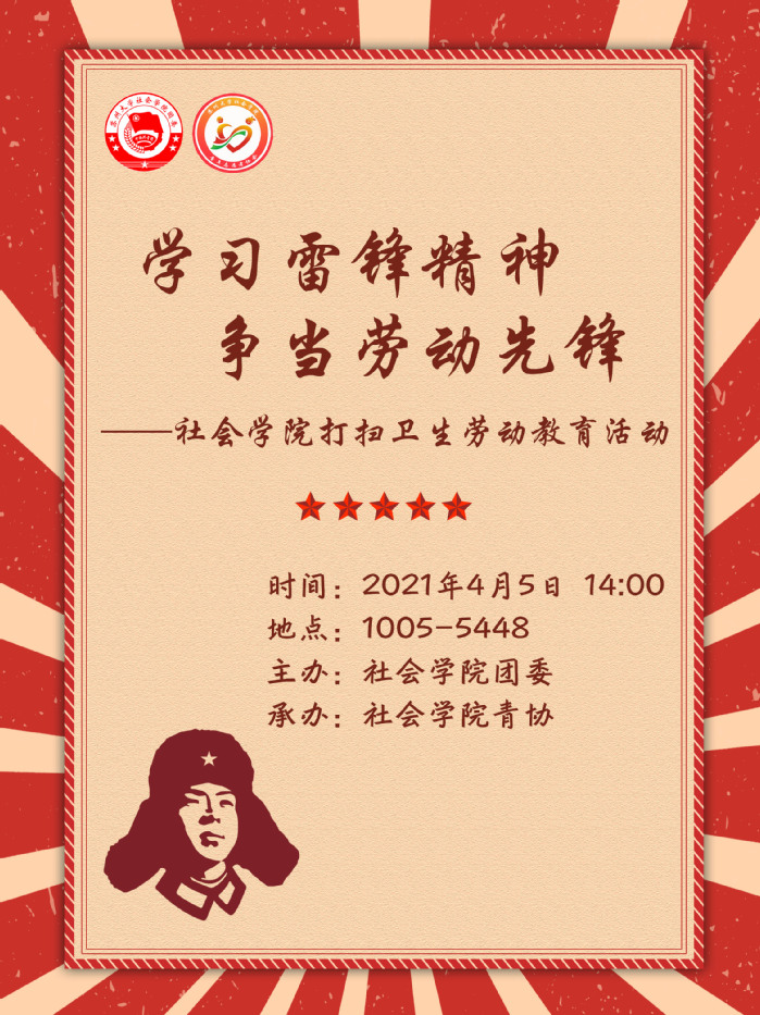 社会学院:学习雷锋精神,争当劳动先锋 ——社会学院打扫卫生劳动教育活动