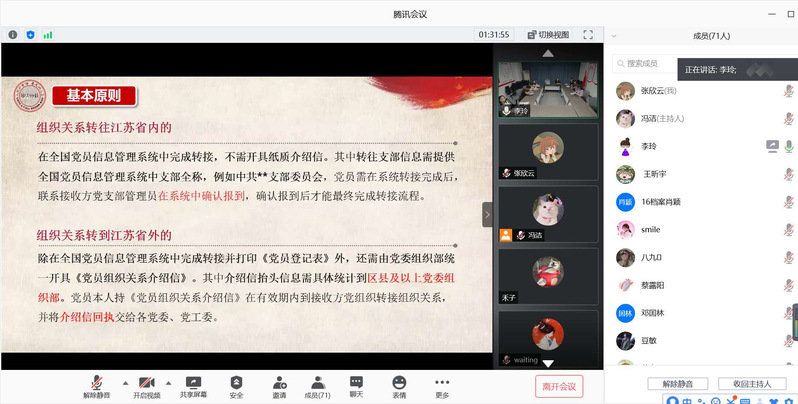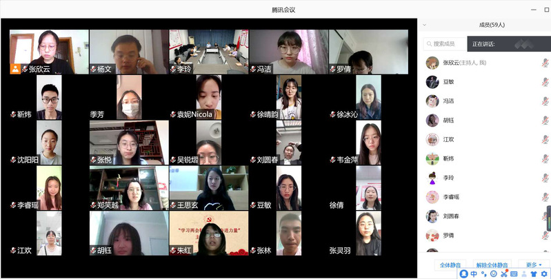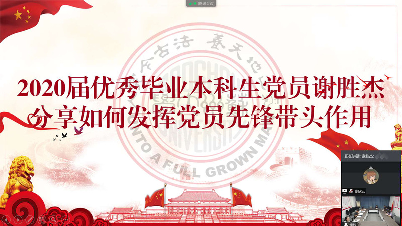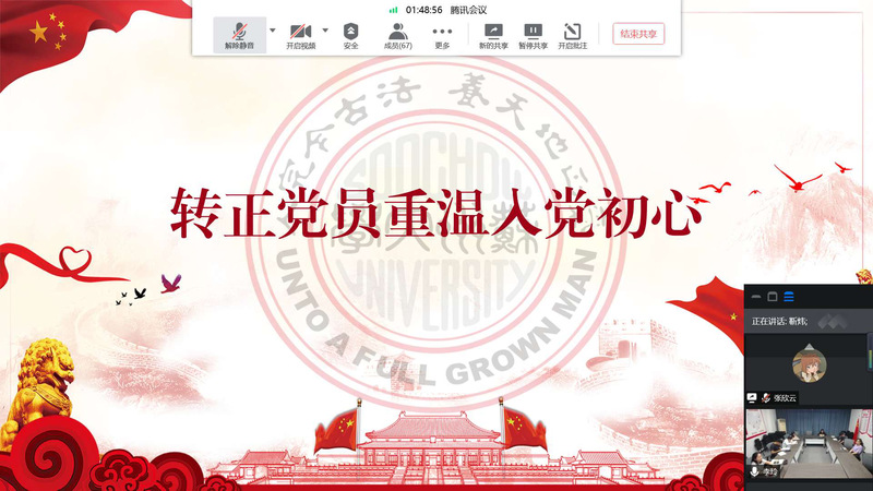 临近毕业,为加强2020届毕业生党员教育,号召全体毕业生党员守初心、担使命、找差距、抓落实,6月19日上午10点,社会学院党委“永葆党性初心,做新时代奋斗者”——2020届毕业生党员专题教育活动成功举办。本次活动以腾讯视频会议的方式召开,苏州大学社会学院党委书记邓国林、社会学院组织员李玲以及社会学院2020届全体毕业生党员通过线上线下相结合的方式参与了此次活动。