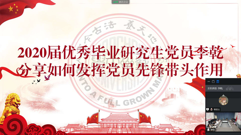 随后,社会学院2020届优秀毕业生党员谢胜杰和李乾同学分别向我们分享了如何发挥党员的先锋模范带头作用。来自本科生第二党支部谢胜杰同学从思想上的坚定、学习上的楷模、工作上的表率、生活上的榜样四个方面进行表态,提出要以实际行动切实发挥好党员的先锋模范带头作用。来自研究生专业型第一党支部李乾同学结合个人实际情况,强调在工作中要真正加强理论与实践相结合,不断反思、总结,继续发光发热,努力为社会发展贡献个人力量。