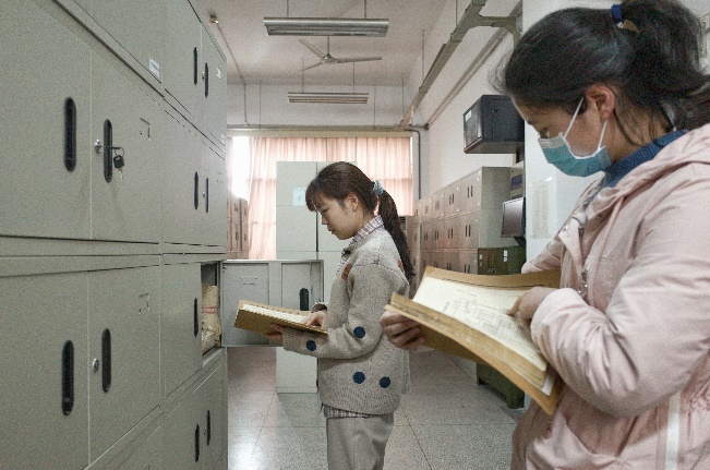 在同学们分工合作完成工作的同时,老师随时关注各组同学的查档进度,始终在档案室内为同学们提供帮助和指导。同学们有了新的发现时会汇报给老师,老师也根据经验提供了许多新的思考想法或挖掘角度,启发同学们以现有的档案为出发点和落脚点,寻找衍生资料,深度探寻档案背后的生动事迹。