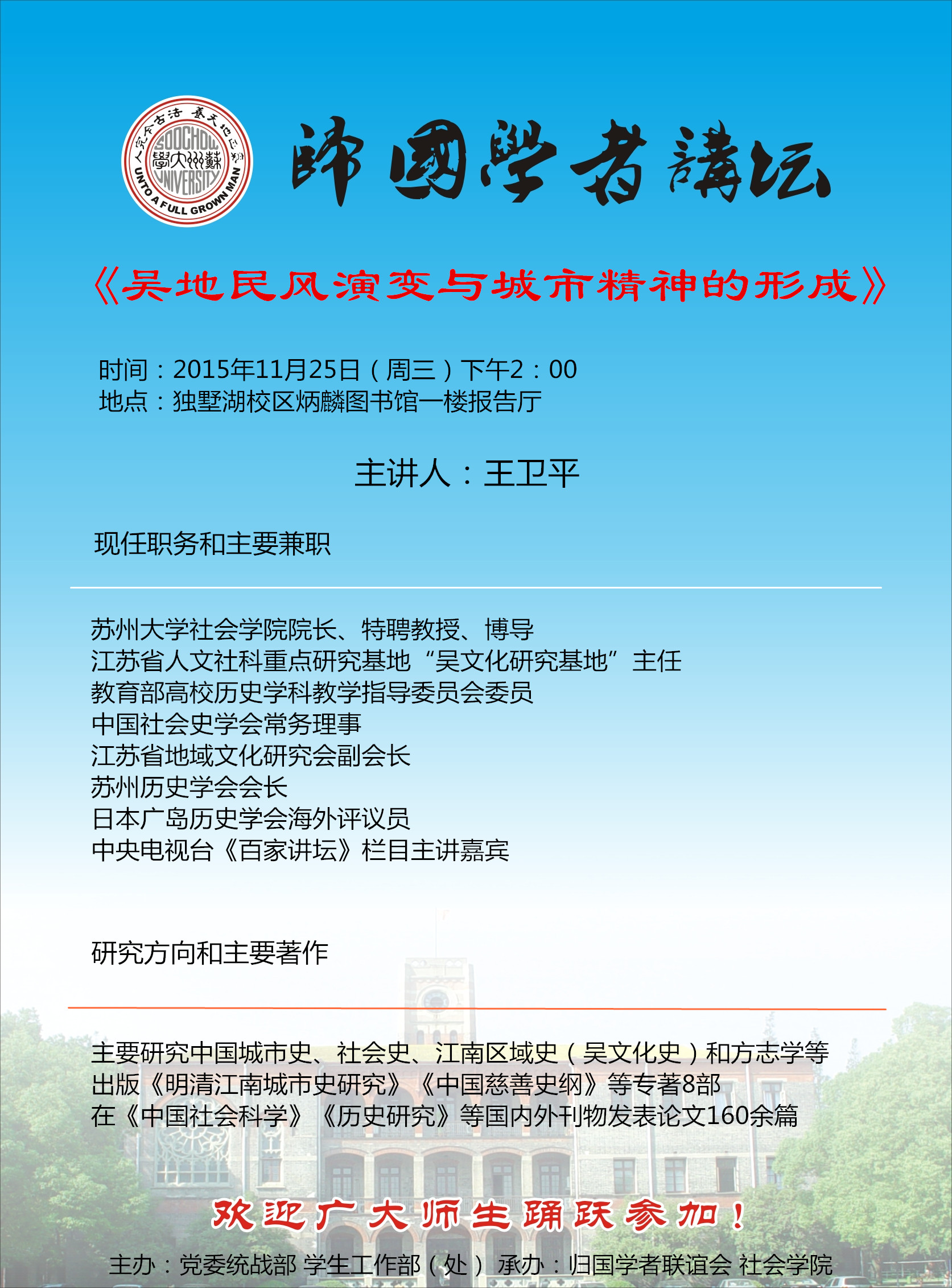 社会学院归国学者讲坛系列之吴地民风演变与城市精神的形成