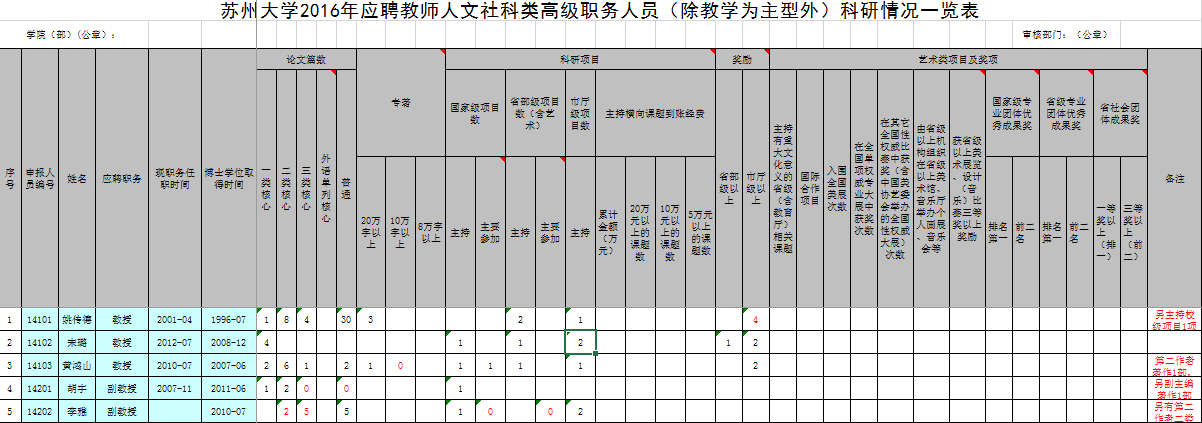 根据学校关于职务评聘的规定,现将我院2016年申报专业技术职务人员的教学及科研统计情况进行公示,公示内容已分别经过学校教务部及人文社会科学院审核,公示期为4月13日--4月18日,公示期间,如有异议,请致电学院综合办公室:65880551。