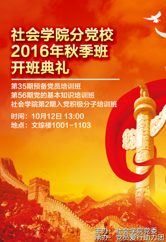 党委通知:苏州大学社会学院2016年秋季班开班典礼(海报)
