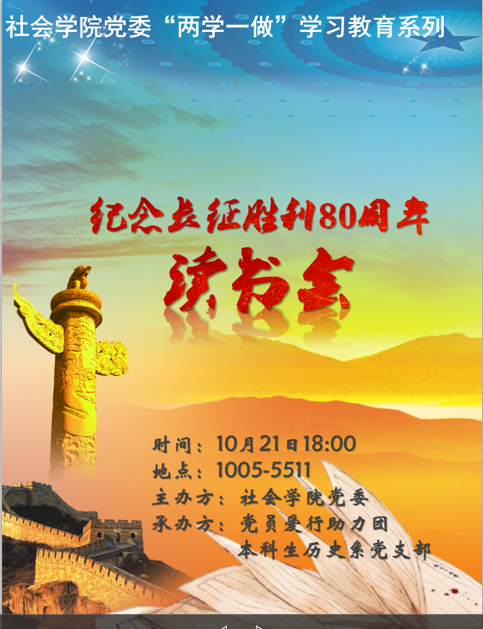 支部动态:本科生历史学系党支部开展长征胜利80周年“阅读红色经典”读书会(海报)
