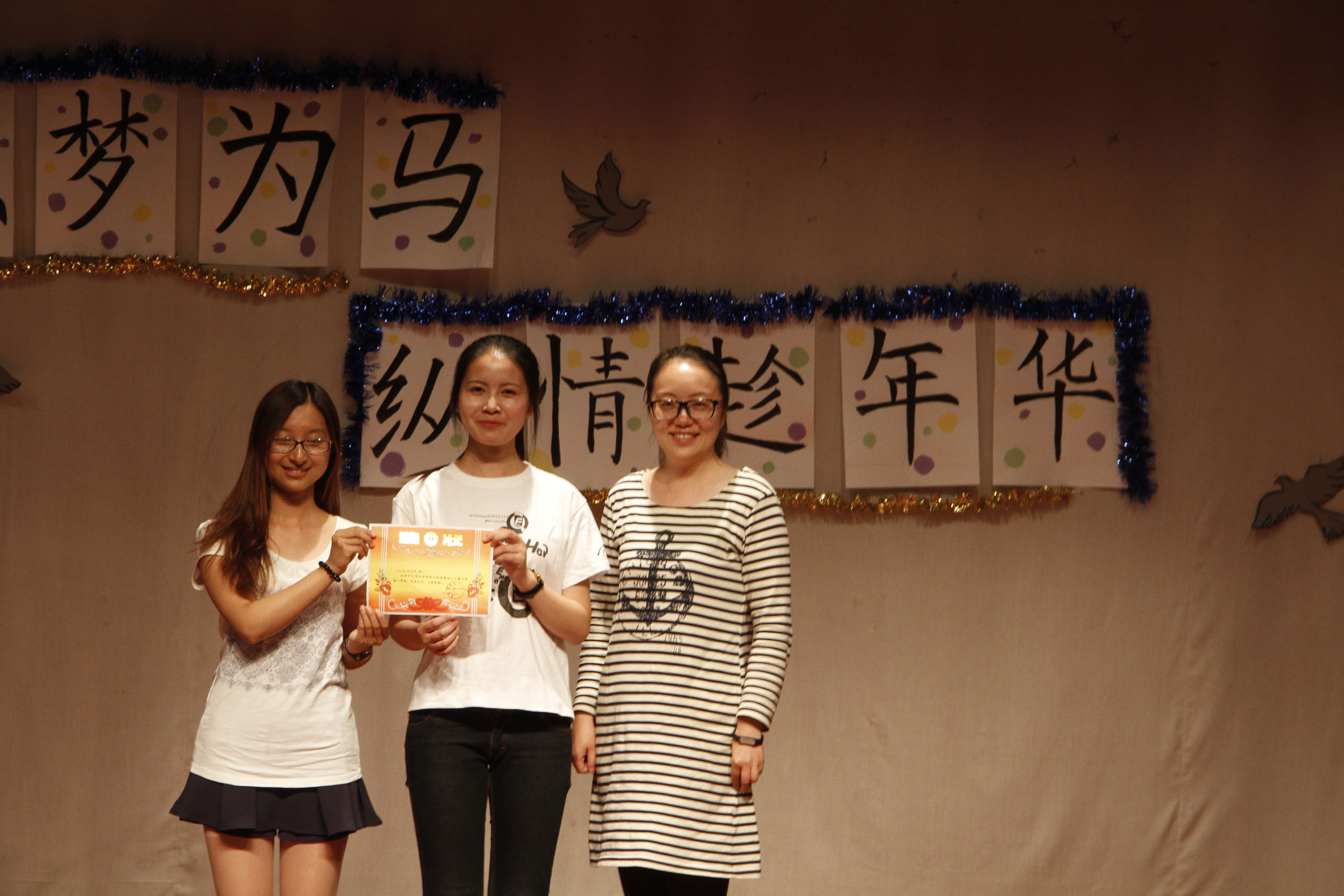 第一个节目过后,董书记、马老师、顾老师分别为优良学风班以及优秀班干部颁奖。董书记借此机会,呼吁大家积极向其学习,热情为学生和学院服务。同时,贴心的董书记充分展现了她对活动过程的关注与对工作人员的关怀。在5月20日这个特殊的日子,董书记将感动持续升级,当她满怀深情对社院全体师生说出“我爱你们”时,师生们所有的辛苦与汗水都化为幸福与满足。