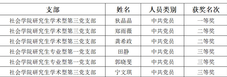 首先,由社会学院专业型第一党支部支部书记宣读考试纪律,向各位参赛选手展示答卷。随后,党史知识竞赛正式拉开了序幕,各位同学都严阵以待,竞赛现场鸦雀无声。经过60分钟的角逐,党史知识竞赛圆满成功。经过组织者的严格批阅,评出一等奖一名,二等奖两名,三等奖三名,并给获奖同学颁发了证书及奖品。以下是获奖同学名单。
