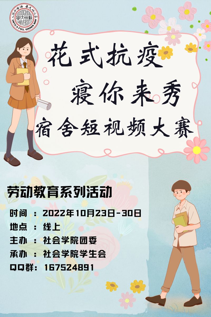 社会学院:“花式抗疫,寝你来秀”宿舍短视频大赛活动——劳动教育系列活动
