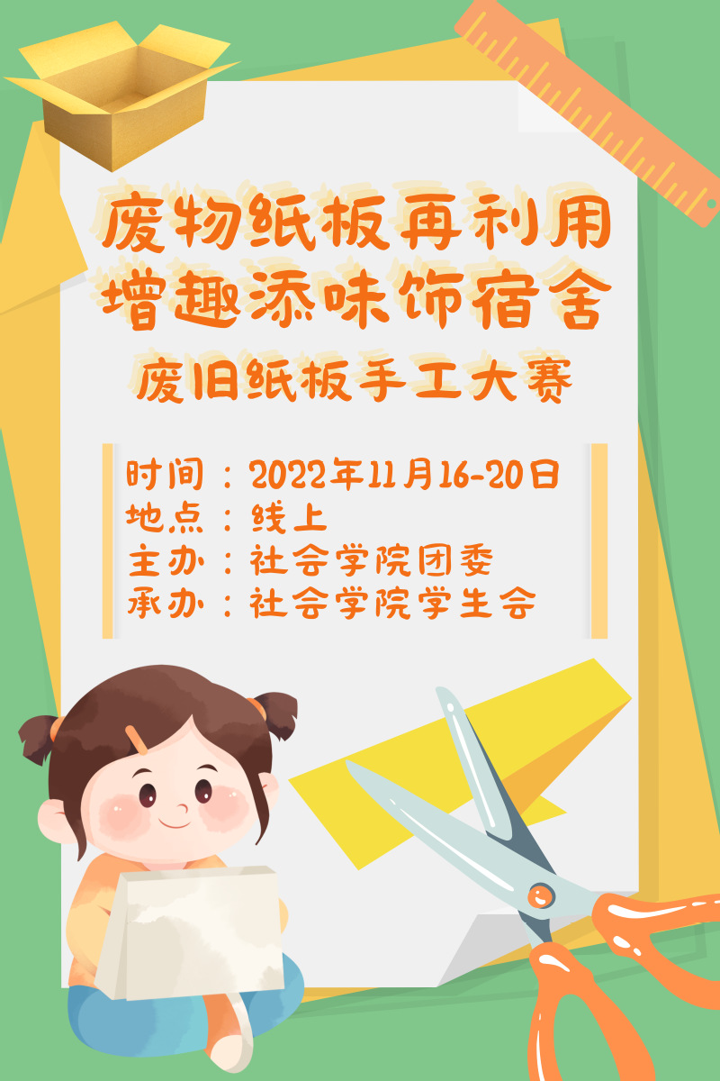 社会学院:“废物纸板再利用,增趣添味饰宿舍”废旧纸板手工大赛