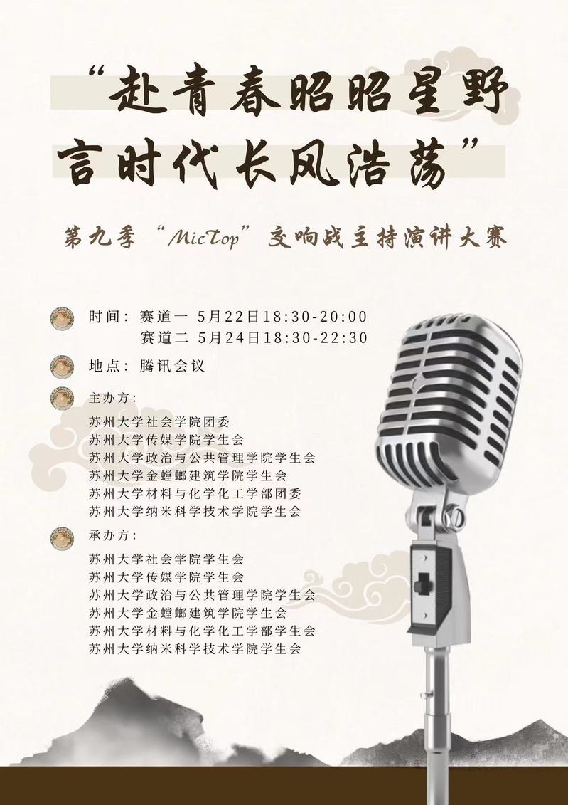 社会学院:畅言青春鸿鹄之志,直抒时代风华凯歌——2022年苏州大学第九季“Mic Top交响战”主持演讲大赛